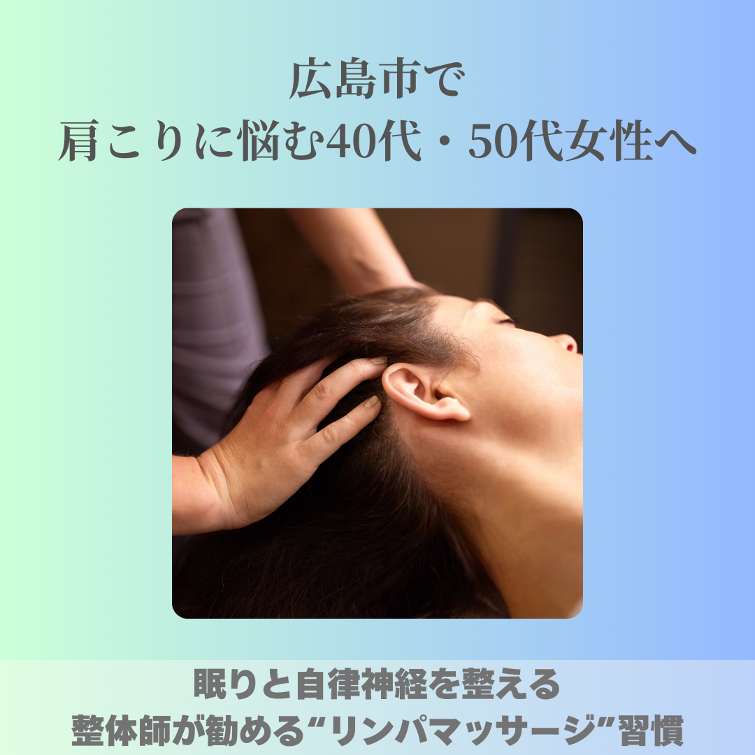 【広島市で肩こりに悩む40代・50代女性へ】眠りと自律神経を整える、整体師が勧める“リンパマッサージ”習慣