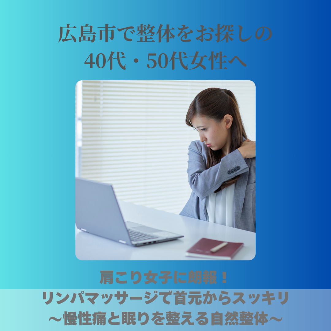 広島市で整体をお探しの40代・50代女性の方へ。