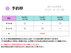 - 限定で新規受付も可能です(予約フォームに空きがある場合)